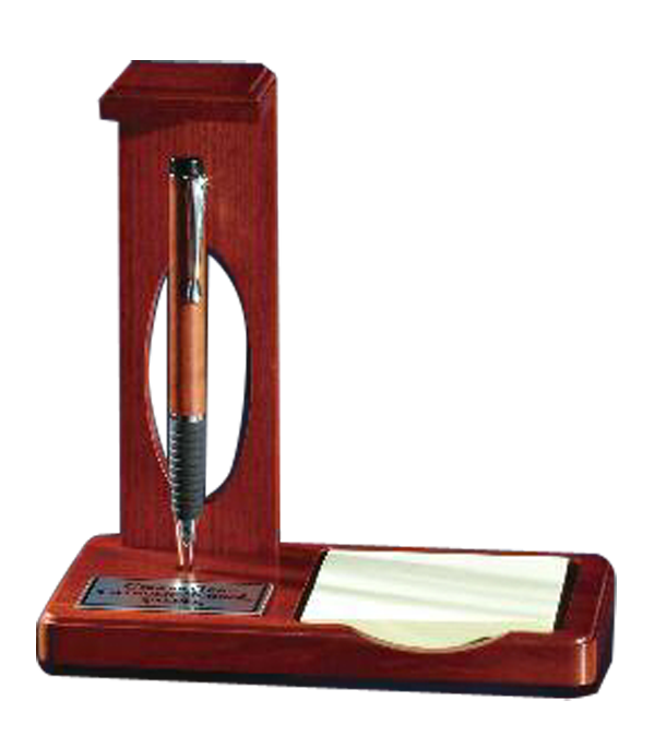 6 3/4" x 6 7/8" Floating Pen Desk Set with Memo Pad in Matte Teakwood Finish with Black Plate