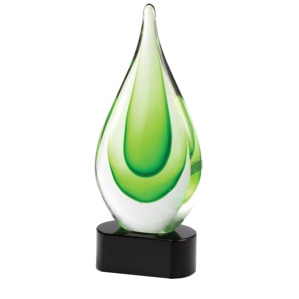 This 9.25" Green Teardrop Art Glass award is an elegant and unique choice for recognizing exceptional achievements. Crafted from high-quality glass, its vibrant green color and teardrop shape add a touch of sophistication to any award ceremony. Showcasing both innovation and excellence, this award is sure to impress recipients and instill a sense of pride and accomplishment.