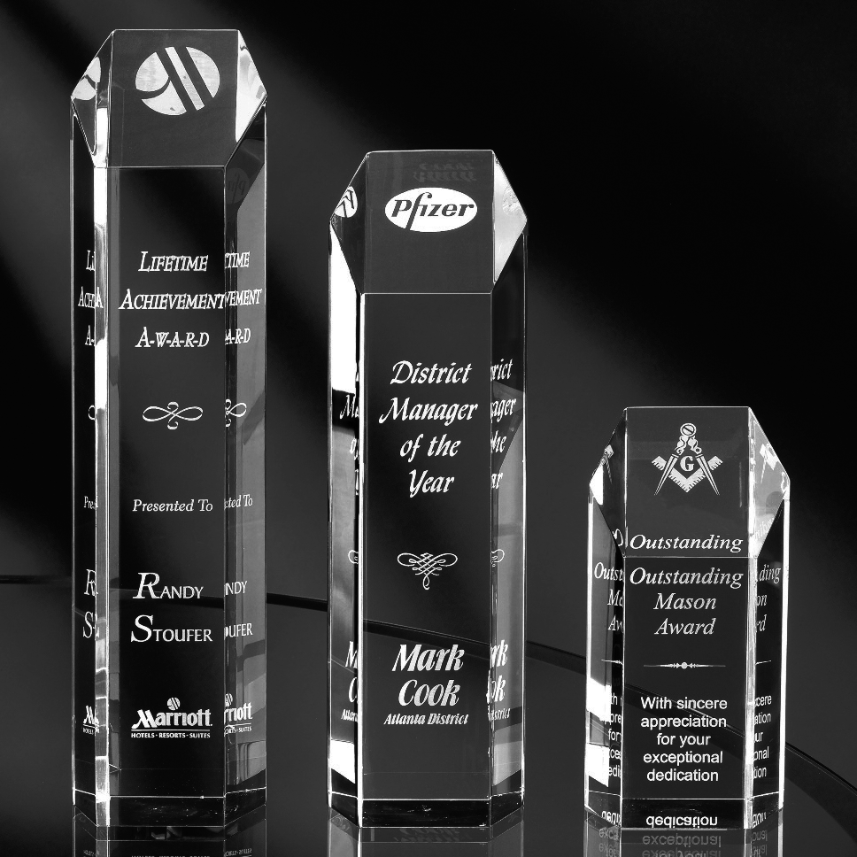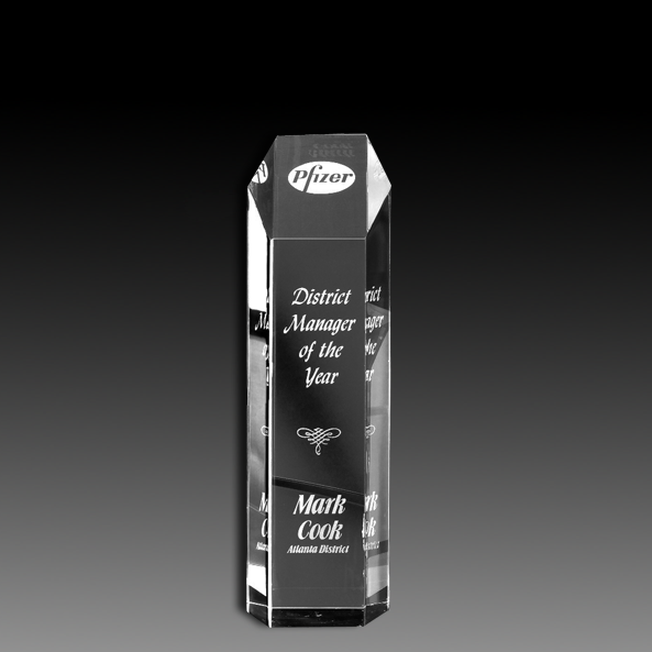 This crystal-clear acrylic award is hand-cut, machine-polished and hand-buffed to a brilliant luster. Laser engraving the reverse side of the tower for that special achievement captures meticulous detail. Enhance your Appreciation Awards by using logos and personalizations.