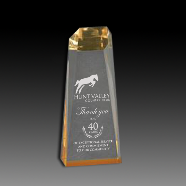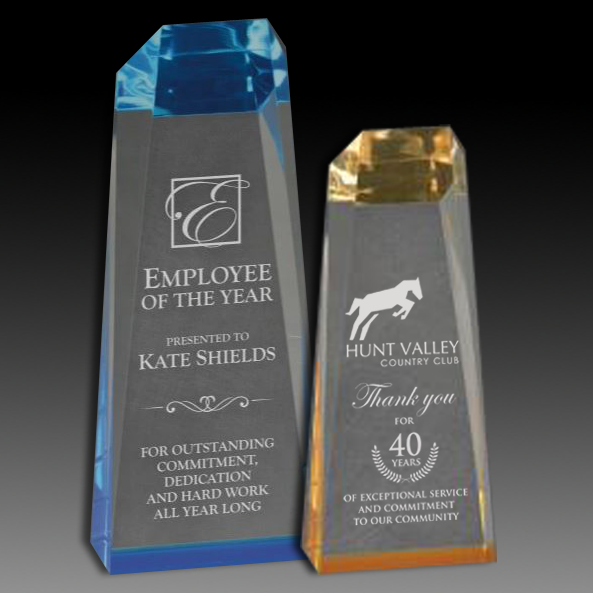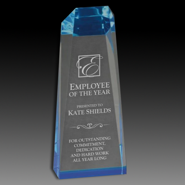 Elevate your award ceremonies with our Acrylic Obelisk, available in two sizes and accented with gold or blue. Achieve a sophisticated look while honoring greatness. An elegant choice for recognizing achievements in any industry.
