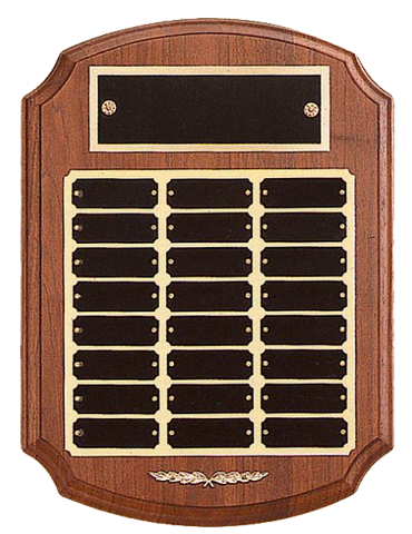 Solid American walnut perpetual plaque with 2 plate combinations. P184 indiv. plate size 1" x 2". P185 indiv. plate size 7/8" x 2-1/2".