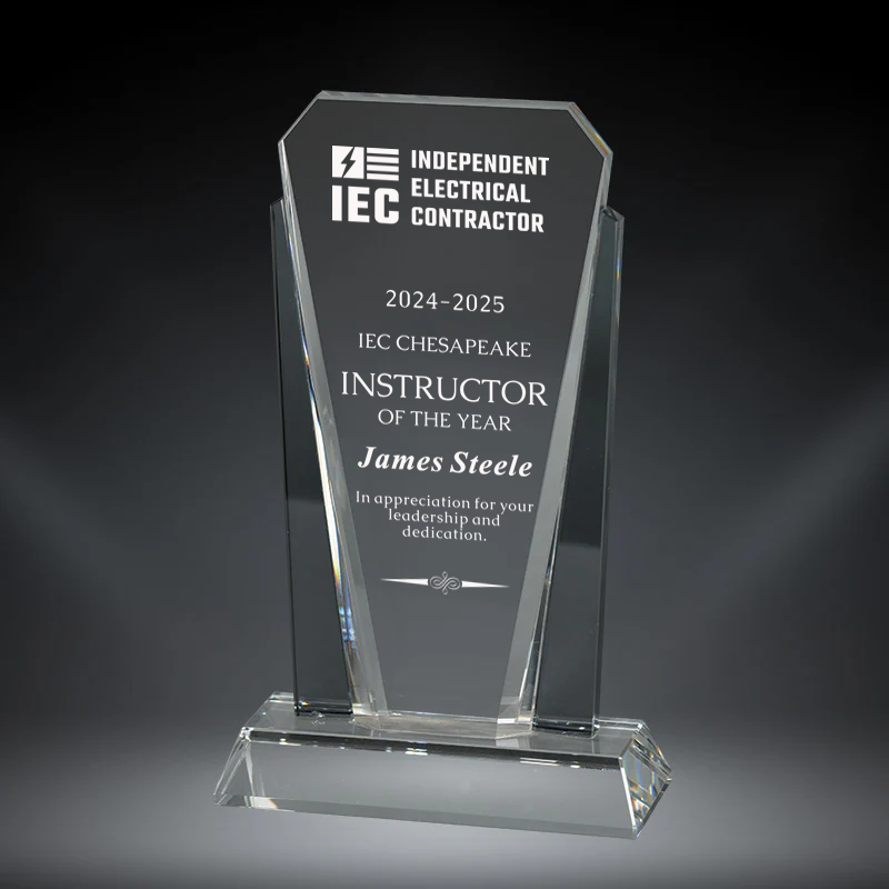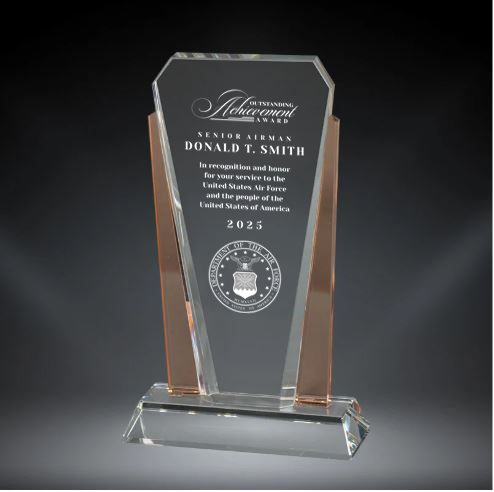 This prestigious crystal award has accents and can be etched with your company logo and a congratulatory message. This award comes in 3 sizes, so it is perfect for your tiered program.