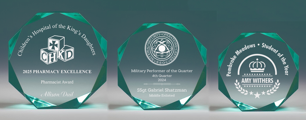 This Beveled Acrylic Octagon award comes in three sizes and is a perfect choice for recognizing exceptional achievements. The beveled edges and clear acrylic material add a touch of elegance to the design. Available in three sizes for versatility, this award is sure to impress recipients and draw attention to their accomplishments.