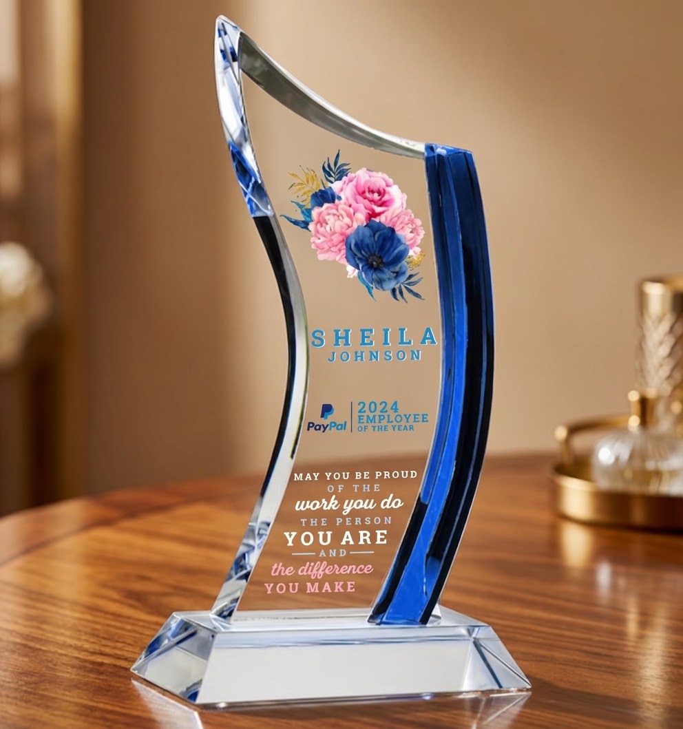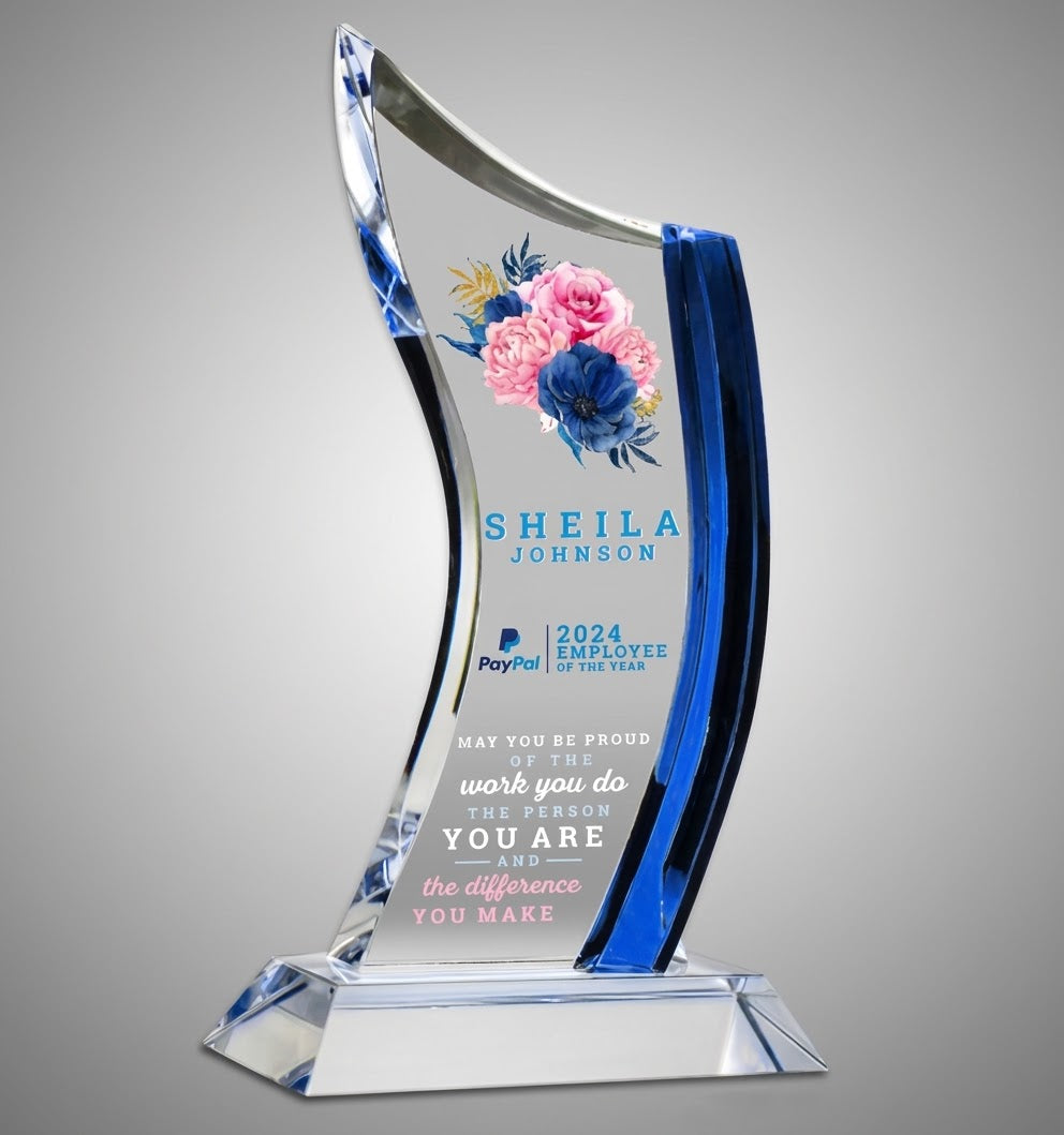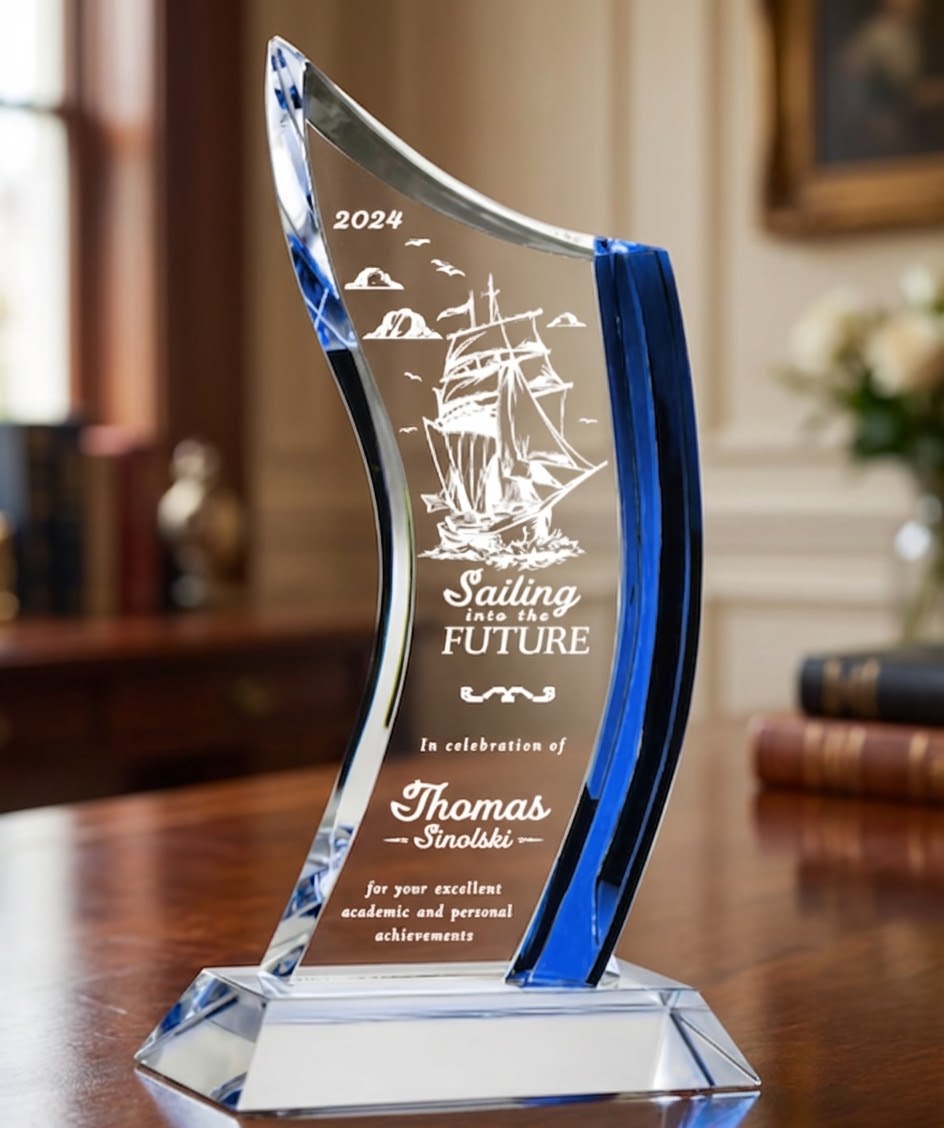 Elevate recognition with the Blue Swoosh Crystal—a striking award that captures achievement in elegant motion. This premium crystal piece features a dynamic swoosh design that symbolizes forward momentum and success. Perfect for corporate events, sports competitions, or milestone celebrations, it makes a lasting impression on any recipient. The polished blue crystal catches light beautifully, creating a sophisticated display piece that honors excellence.