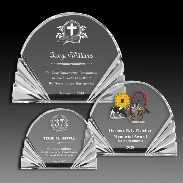 This clear Acrylic Fan is a magnificent piece. The recipient will be proud to display this award in any environment. Recognize the excellence that is around you.