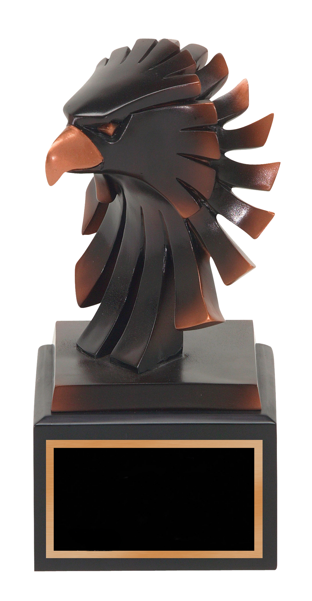 Unique and Stylized Eagle head featuring a bronze finish and matte ebony base.