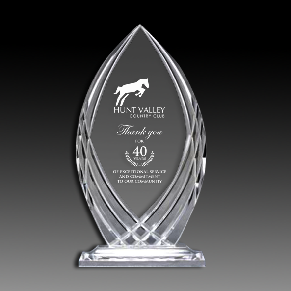 This 10-inch carved acrylic pinnacle mounted on a sturdy base offers a distinguished and elegant award presentation. Its clear, polished design highlights intricate craftsmanship, making it an ideal recognition piece for outstanding achievements. Durable and visually striking, it conveys prestige and excellence in any professional setting.
