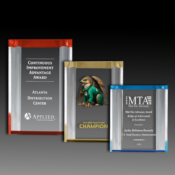 Channel acrylic award impressively finished with your choice or red or blue highlights will make a timeless memento. We offer this beautiful award in three different sizes.