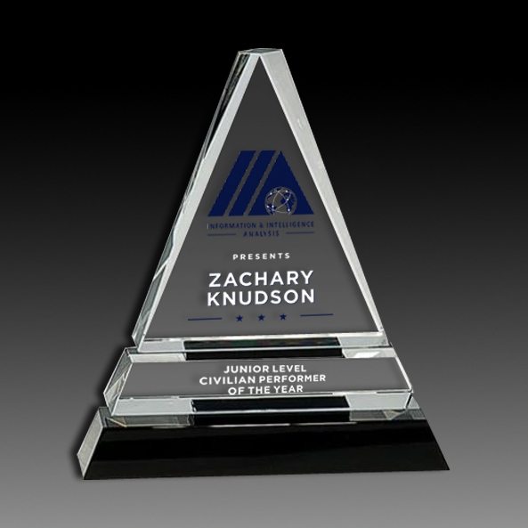This Crystal Triangle is a classic design. Each item is precision-machined and then hand-finished to absolute perfection to accept your etched personalized logo and text. Can also be printed in full color.