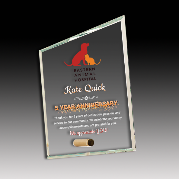This clear glass award is available in 3 sizes and 3 shapes. This is an all purpose gift and it can be used as an award or gift. Engrave the front of the award with their name, title, logo, or a message