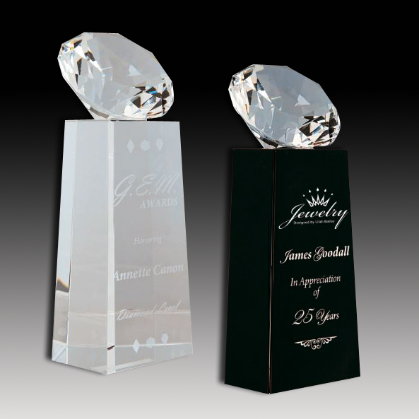 This 7.75" Crystal Diamond on Crystal Pedestal is a distinguished award that combines refined craftsmanship with timeless elegance. Made from premium crystal, the diamond-shaped centerpiece reflects light with exceptional clarity, while the sturdy crystal pedestal offers a polished and stable base. Perfect for recognizing outstanding achievements, this award adds a sophisticated touch to any presentation or display.