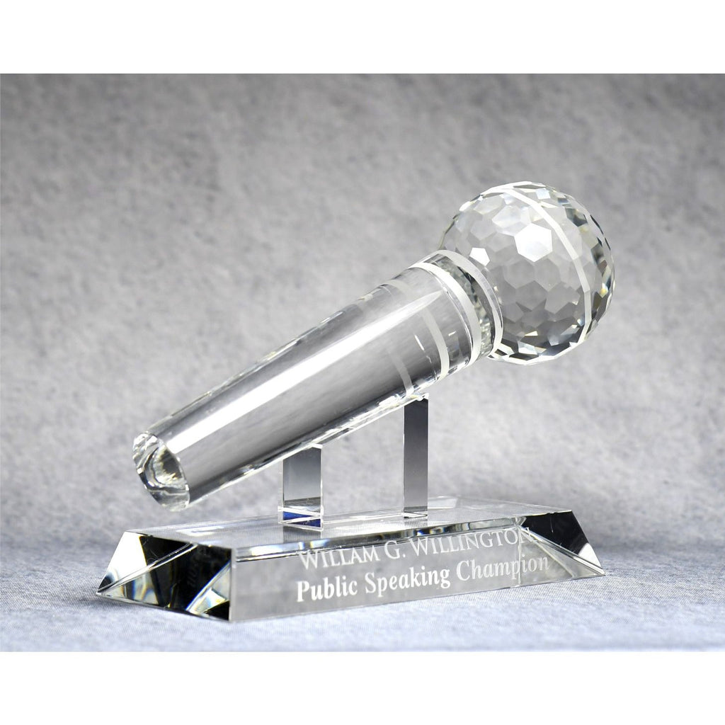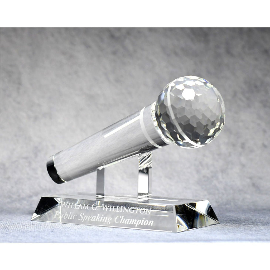 This one-of-a-kind gift or award is made of pure optic crystal. The sculpted microphone is 6 inches and set atop a crystal base. Your text and logo are etched directly onto the base. Once you use this award, you'll want to tell the world how well your recipients loved it.