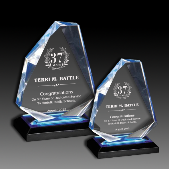 This Diamond Acrylic award showcases gold and blue accents in 2 sizes, making it a versatile option for any achievement. The sleek and modern design is sure to impress, making it the perfect choice for recognizing top performers and leaders. Choose this award for a sophisticated touch to any recognition event.
