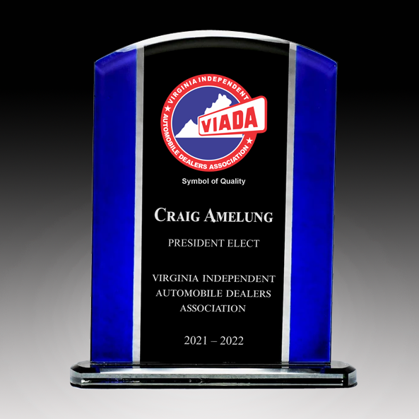This economical standing award is made of black and blue glass panels and perfect for any office. Varying sizes make this award perfect for different levels of recognition. The center panel can be laser etched.
