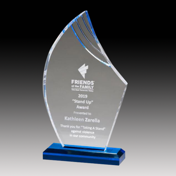 This award from the Flame Series showcases a sleek design in clear acrylic with blue accents. Crafted with expert precision and attention to detail, it adds a touch of elegance to any recognition ceremony. Make your recipients stand out with this one-of-a-kind award.