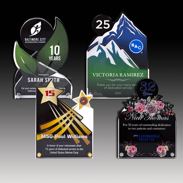 Display your Years of service, Retirement and more with this dual layered Acrylic!