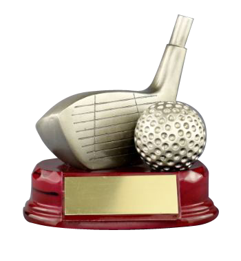 A golf driver and golf ball hand-crafted SilverStone sport sculpture. The pewter finished resin figurine provides something completely different for your upcoming golf event. The lifelike club and ball are set on an elegant mahogany base with a silver personalization plate. Combine this item with our golf wedge award and golf putter award to cover all three tournament awards: longest drive, longest putt, and closest to the pin.