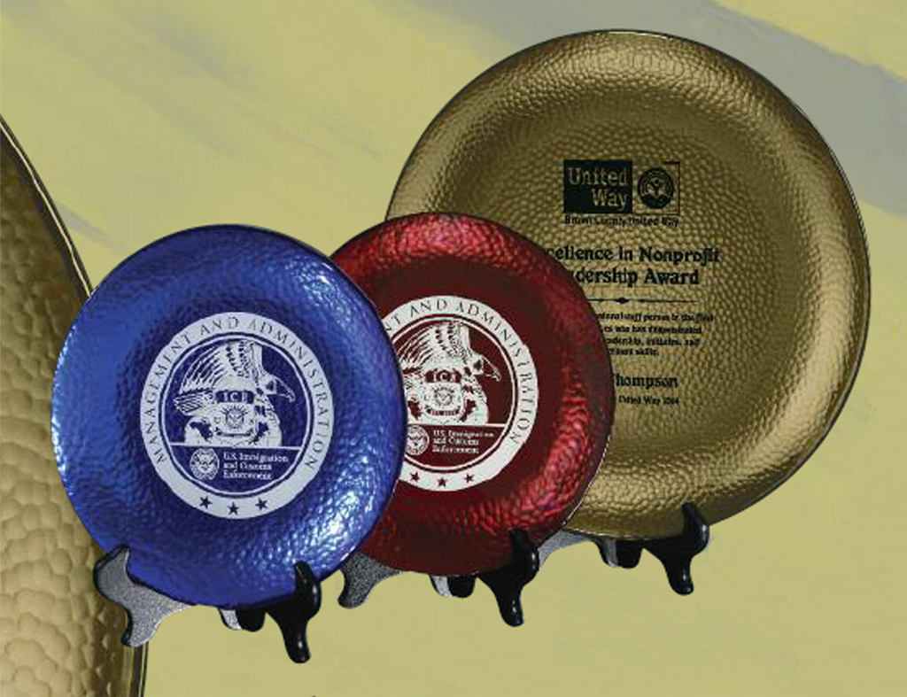 The Hammered Glass Tray combines elegant design with versatile functionality, making it an ideal gift or award. Available in two sizes and three striking colors—blue, gold, and red—this tray adds a sophisticated touch to any setting. Its textured surface enhances grip and visual appeal, perfect for display or serving purposes. Crafted to impress, it suits both personal and professional occasions.