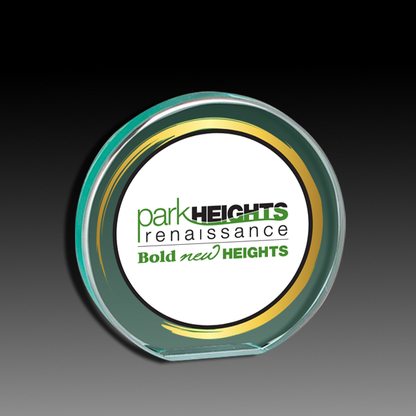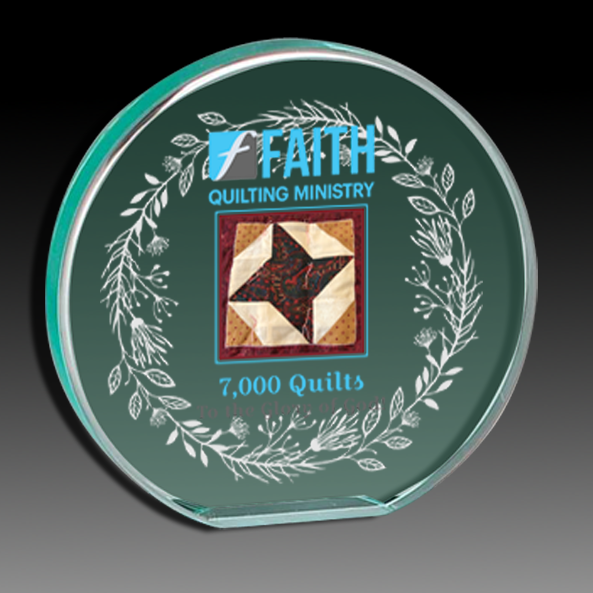 This round acrylic award can be given as a gift or an award. We offer it in four different sizes. You can acknowledge someone's achievements, or it can be an inspirational gift. It would look nice in any setting. You can add any message of your choosing. Surprise someone today! Available in Clear or Jade.