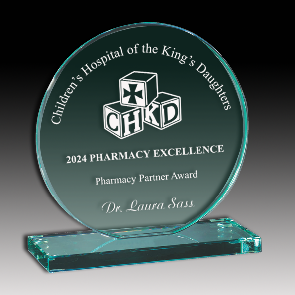 Our Round Jade Crystal Award on a crystal base is a simple yet classy design. The round shape provides a perfect backdrop to etch circular images or designs. Full color graphics such as a basketball or baseball are perfect ways to provide a high-end prestigious sports award. Two sizes are available for your programs.