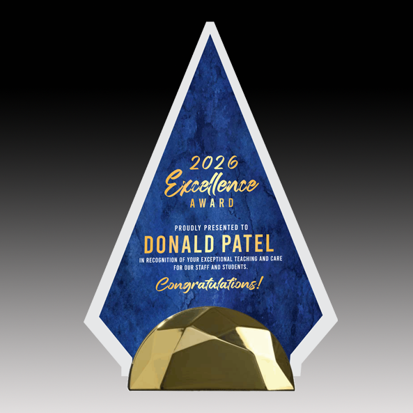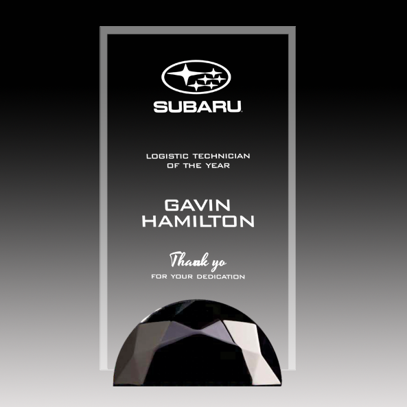 This Jade Glass award features precise digital printing and elegant bevels, mounted securely on a sturdy metal base. Available in two distinct base shapes and a variety of colors, it offers customizable options to suit any recognition event. Its refined design combines durability with a sophisticated aesthetic, making it an excellent choice for honoring achievements with lasting impact.
