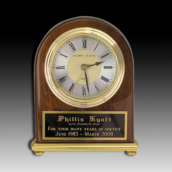 This 4" x 5" dome clock is expertly crafted with a sleek lacquer finish, making it a sophisticated addition to any room. Its durability and elegant design make it a perfect gift or award. Keep track of time in style with our Lacquer Finished Dome Clock.
