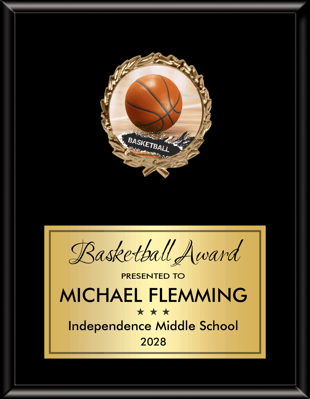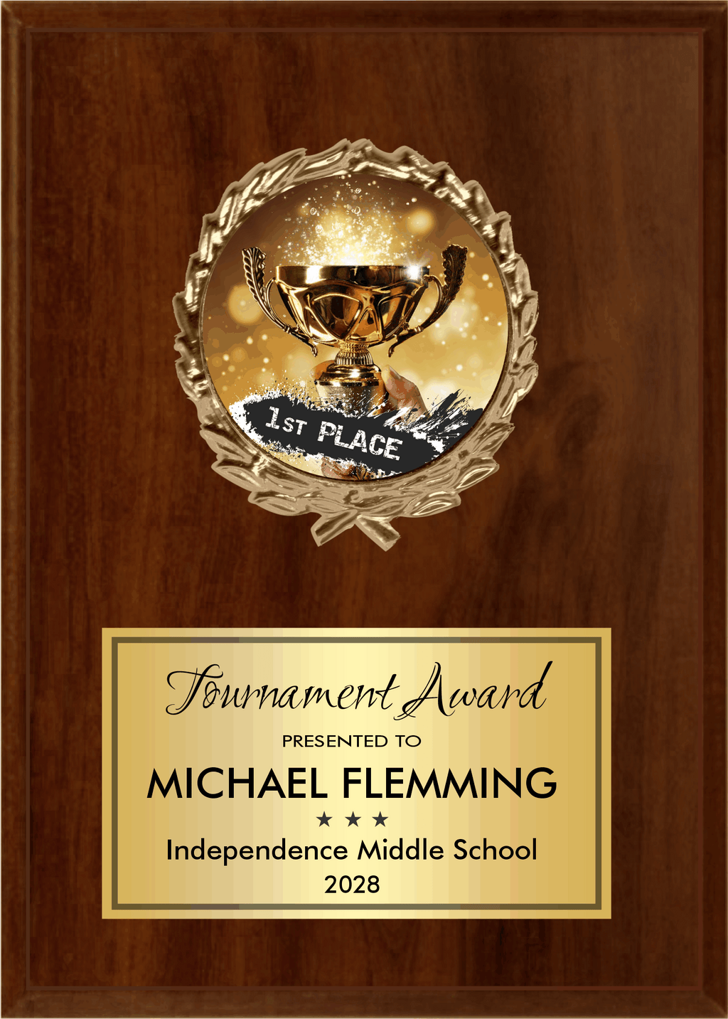 A GREAT economical participation or recognition award!‚ This wreath medallion plaque provides dozens of options.‚ Select from a multitude of contemporary and colorful activity inserts that will be displayed in our a gold wreath medallion. The plaque is available in two colors and 5 sizes to cover any event placement.‚ ‚ Included is black personalized copy provided on gold-tone metal plate.