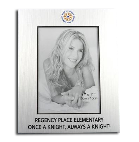 This brushed, silver metal frame is designed to hold a 4x6 or 5x7 inch photo. It comes with a non-tarnish finish that can be lasered on any of the four sides. This works well at the office or on a desk at home. The attached easel allows it to be used either vertically or horizontally. Set your photograph apart by adding this gleaming silver frame.