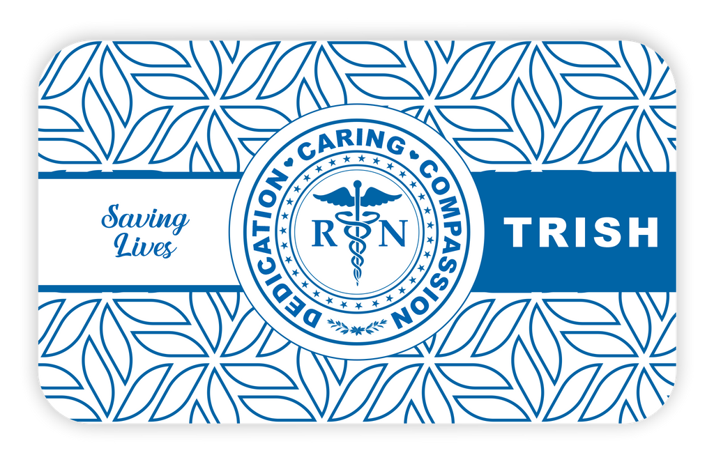 NAME BADGE WITH FULL COLOR IMAGE AND MAGNETIC FINDING - ONE OR TWO LOGOS, NAME AND TITLE printed on white badge sized 2.125"x3.675"