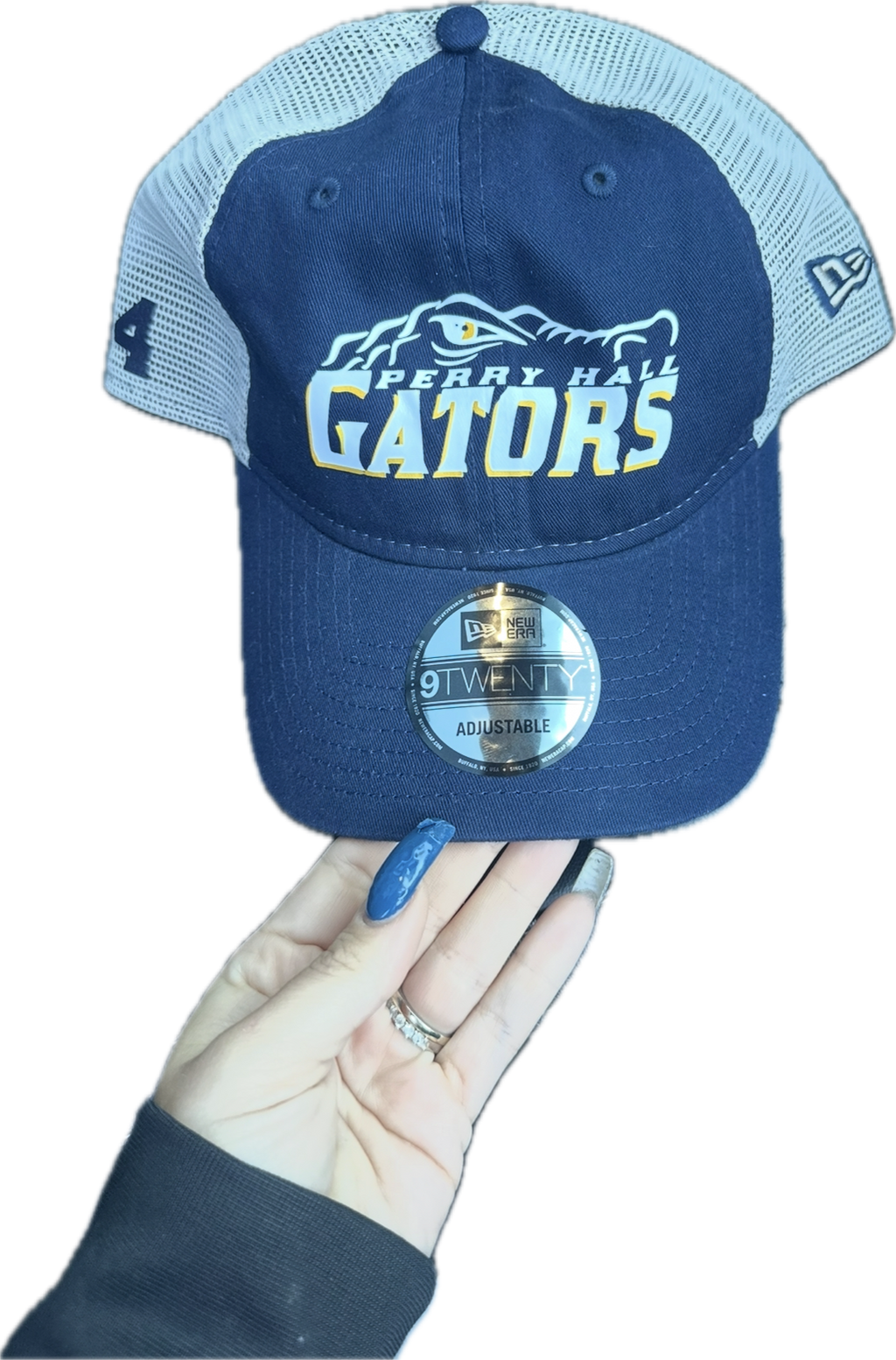 The Perry Hall Gators Cap offers a sleek navy and stone color combination, crafted with New Era® 9TWENTY® unstructured mesh for breathability and a comfortable fit. This snapback cap is customizable with your player’s number, making it a perfect choice for fans and athletes who want to display team spirit with a personalized touch. Durable and stylish, it seamlessly blends performance features with everyday wearability.