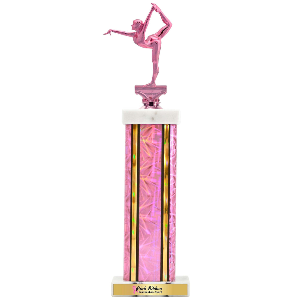 Celebrate and raise awareness for Breast Cancer with our Pretty in Pink Rectangle Column Trophy. Available in three sizes, this award features a special pink column and figure options, making a powerful statement. Add your own message or award winner's name on the attached gold plate. Perfect for a special event or recognition.