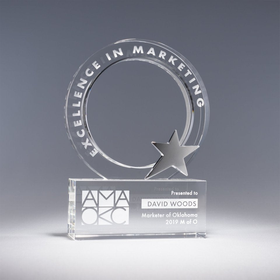 Optic crystal and chrome-plated metal work in harmony to create a recognition piece that is contemporary yet timeless.