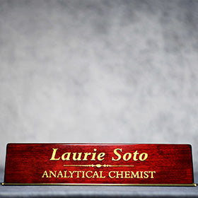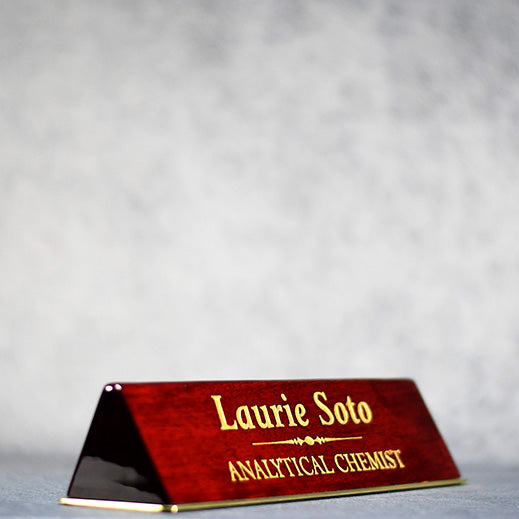 This desk wedge is magnificent in every sense of the word. A highly polished and lacquered piano finish wedge sits atop a gleaming base. The desk wedge is laser engraved and color-filled. The lettering matches the base color and pulls the entire award into one cohesive design anyone would be proud to display.