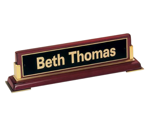 This Rosewood Piano Finish Nameplate is the perfect gift for any professional or executive. Crafted with elegant rosewood and a sleek piano finish, this 10.625 x 2.75 x 2.5 nameplate adds a touch of sophistication to any workspace. Show off your expertise with this professional and timeless nameplate.