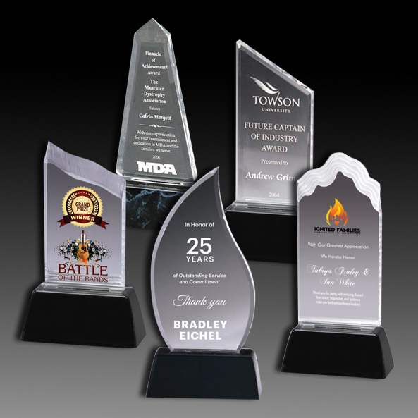 This fascinating acrylic award is a perfect gift to celebrate someone's achievements. The edges on the diamond are beveled, which allow it to look sharp and stunning. Then the black marble finish base adds a mysterious look that makes it stand out. Your message can be engraved to the acrylic part of the award.