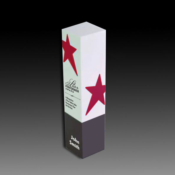 This 9.75" award is made from durable white poly resin and features elegant blue star designs. Perfect for recognizing achievements or honoring individuals with a touch of sophistication. Elevate your award ceremonies with this high-quality piece.